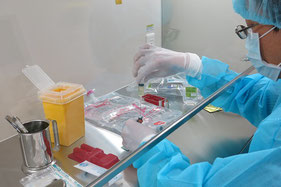 松阪地区薬剤師会では、より安全でレベルの高い混注業務を標準的に実行できるように、2014年11月より無菌調製検討委員会を組織し、使用器材や物品の選定、手順書の作成や会営センター薬局薬剤師を対象とした研修会の開催などに取り組んできました。抗がん剤や麻薬混注業務も可能です。 地域の薬局が利用できるよう共同利用も可能な施設となっております。
