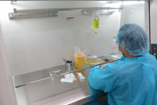 センター薬局では、在宅医療の推進を図るために、地域の薬局が共同利用の可能な無菌調剤室を整備し、がん患者等の在宅医療において高い無菌性が求められる注射薬や輸液などを身近な薬局でも調剤できるよう体制を整えております。